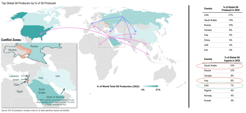 Heightened geopolitical risk from key global oil producers could increase volatility in the oil market; possible risk for global oil flows re Strait of Hormuz