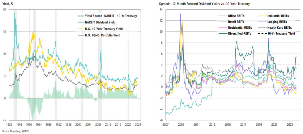 U.S. REITs have rallied 7.2% off 2022 lows, but still look wholly unattractive on a relative yield basis, despite looking more attractive on an absolute basis