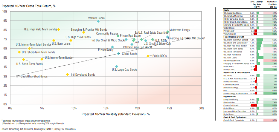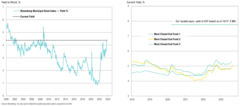 Expected 10-year returns for bonds rose with yields; municipal bonds stand out on an after-tax risk-adjusted basis