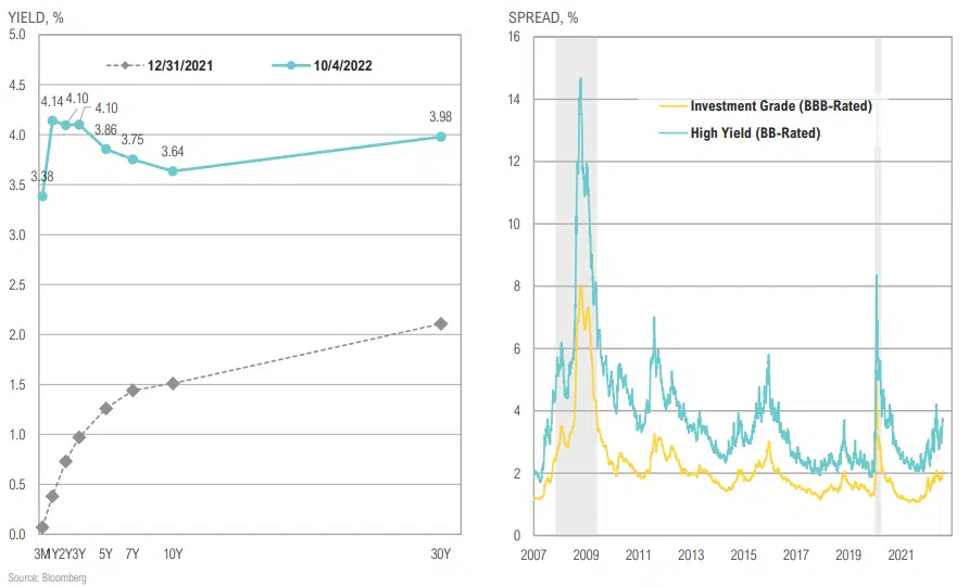 U.S. Treasury yield curve has continued to shift higher with parts of the curve remaining deeply inverted; credit spreads have risen sharply over the quarter, but not to crisis levels