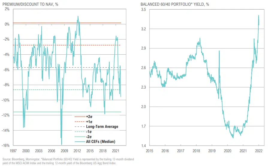 Closed-end fund discounts widened over the quarter, with taxable bond CEF’s at widest discount since 2018; lower prices resulted in a jump in U.S. stock and bond yields