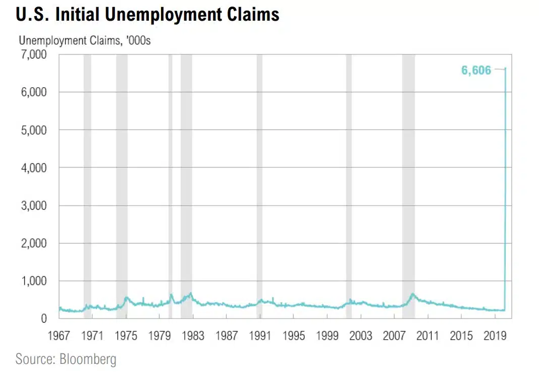 As many major U.S. cities enter their fourth week of containment, we are beginning to get a glimpse into the economic toll that shutting down broad swathes of the economy has taken. In the last three weeks, nearly 17 million Americans applied for first-time unemployment insurance, according to real-time labor market statistics. Many more are expected in the coming weeks. Economists at the St. Louis district of the Federal Reserve have estimated that the unemployment rate could temporarily spike to 32%, the highest in recorded history.