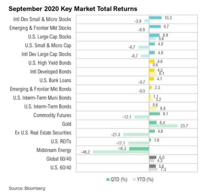 In the third quarter, the S&P 500 rose by 9% while the Bloomberg Barclays U.S. Aggregate Bond Index gained 0.6%. These returns were relatively normal when compared to the two radically different quarters we had to start the year.