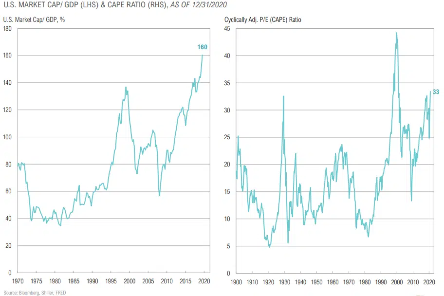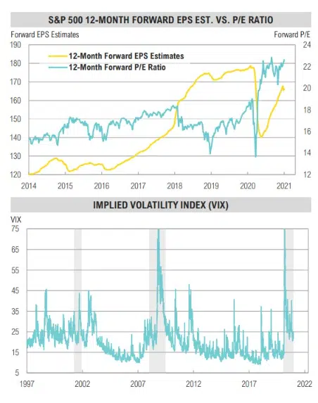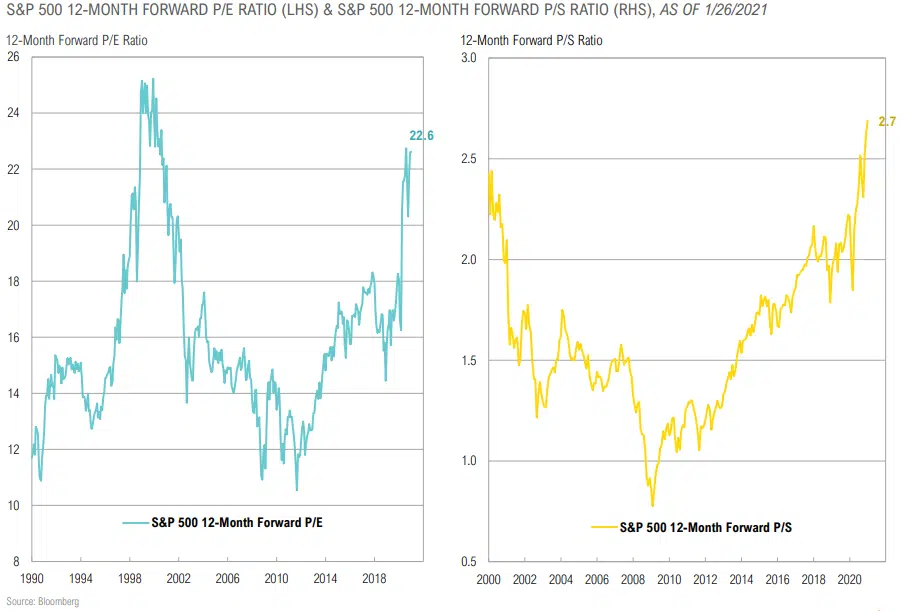 - The 12-month forward P/E ratio for the S&P 500 Index is currently 4x, near its highest level since 2000.
