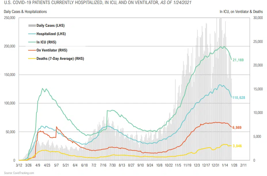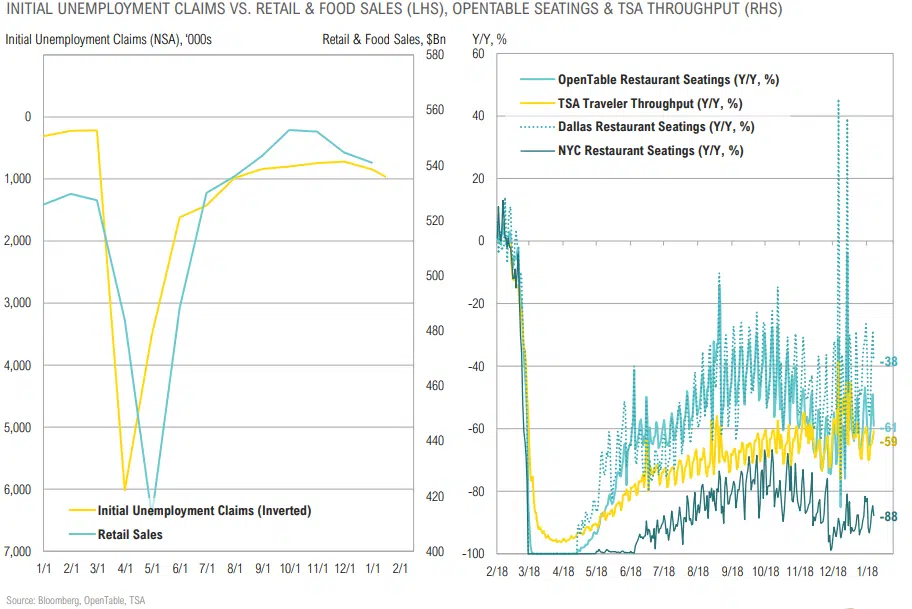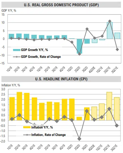 - U.S. real GDP growth is expected to have dropped 2.4% year over-year in Q4 but is expected to bounce back in 2021.