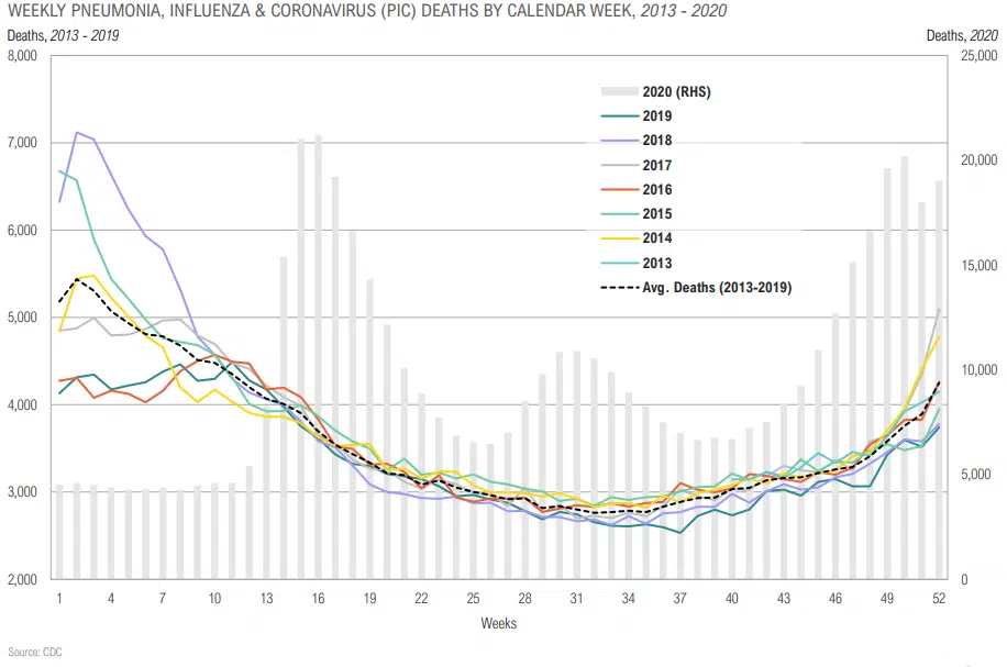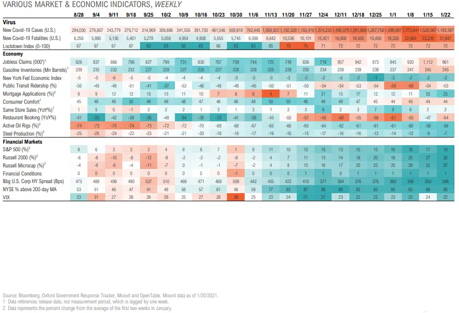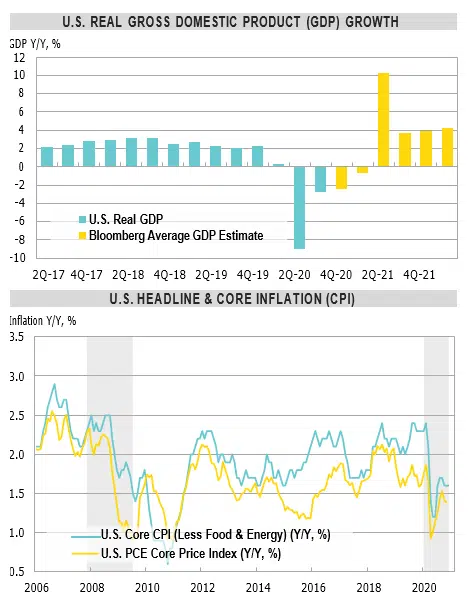 - U.S. real GDP growth is expected to have dropped 2.4% year- over-year in Q4 and 3.5% for the full year. It is expected to bounce back by 5.2% in 2021 (Bloomberg).