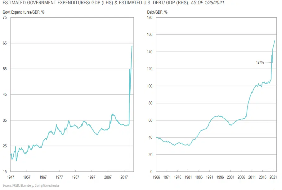 - The Covid-19 crisis removing social and political pushback to government spending and bailouts