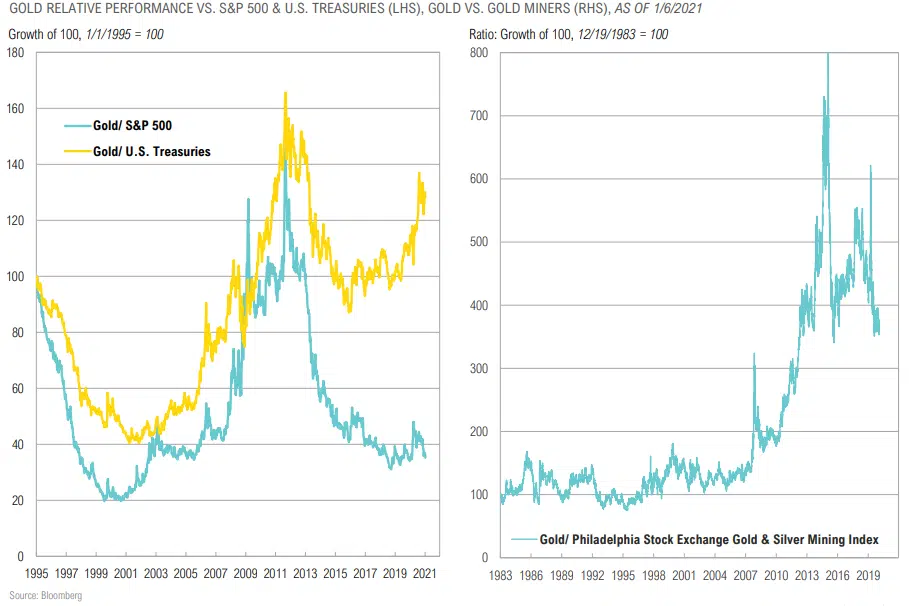 Gold has Room to Run vs. Core Stocks & Bonds… & Miners Have Room to Run vs. Physical