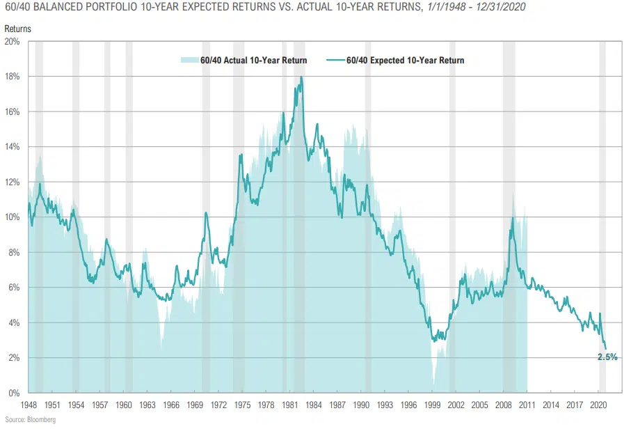 Expected Returns for Passive “60/40” Portfolio Near All-Time Low