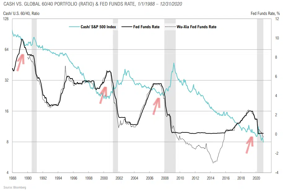 - Near record low hurdle rate/opportunity cost of U.S. core 60/40 portfolios (expected 10-year nominal returns of ~2.5%) and higher expected volatility.