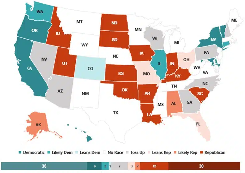 Another complicating factor is the dramatic migration that has occurred both into and out of the seven states currently viewed as toss-ups. Of these, Nevada, Arizona, and North Carolina were in the top ten states for inbound migration while Pennsylvania was in the top ten for outbound migration.28 On aggregate, voters appear to be leaving high-tax, high-cost states for lower-tax, lower-cost alternatives. In the top one-third of states for population growth since the start of the pandemic, the average combined top marginal state and local income tax rate is 3.5%, while in the bottom third of states, it is 7.3%.28