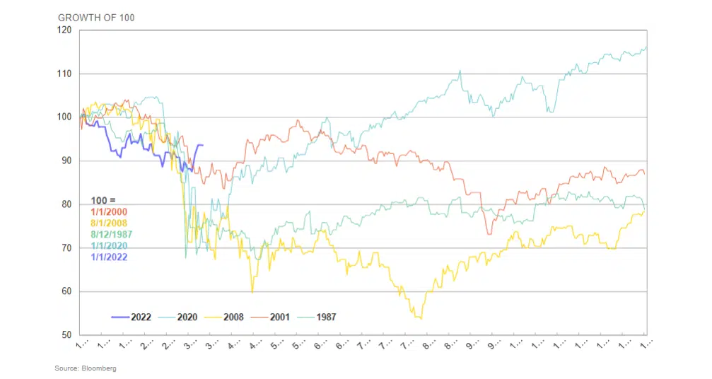 Current drawdown vs. historic bear markets