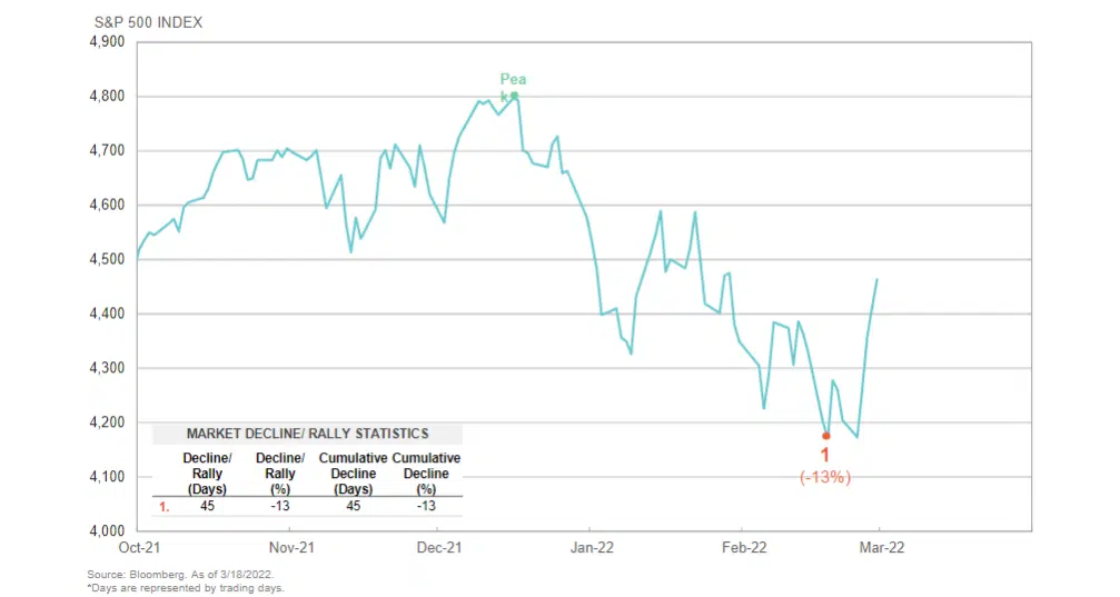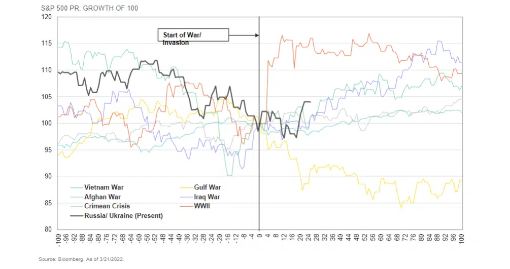 Historically the stock market has performed well post the start of a war/invasion