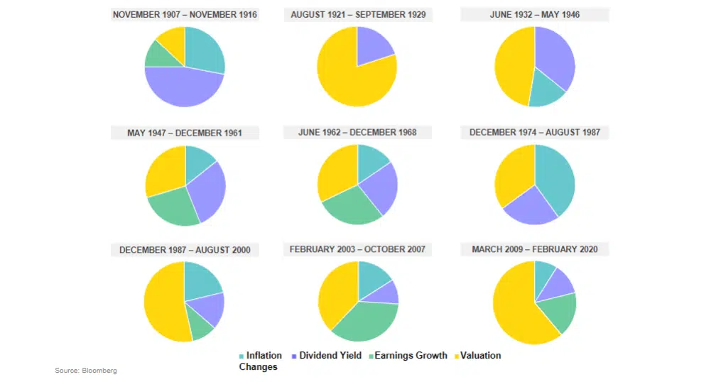 Recent cycle returns have largely been driven by valuation changes, which has contributed to volatility