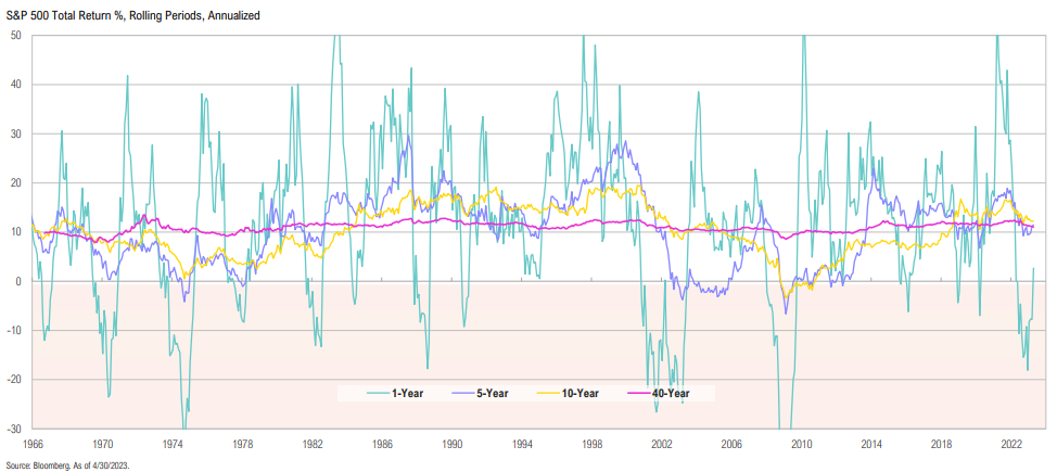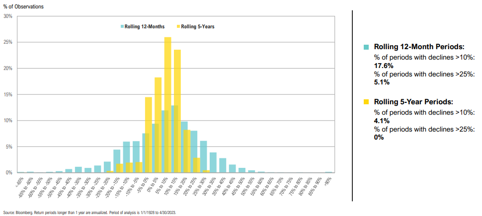 S&P 500 1-Year vs. 5-Year Rolling Returns