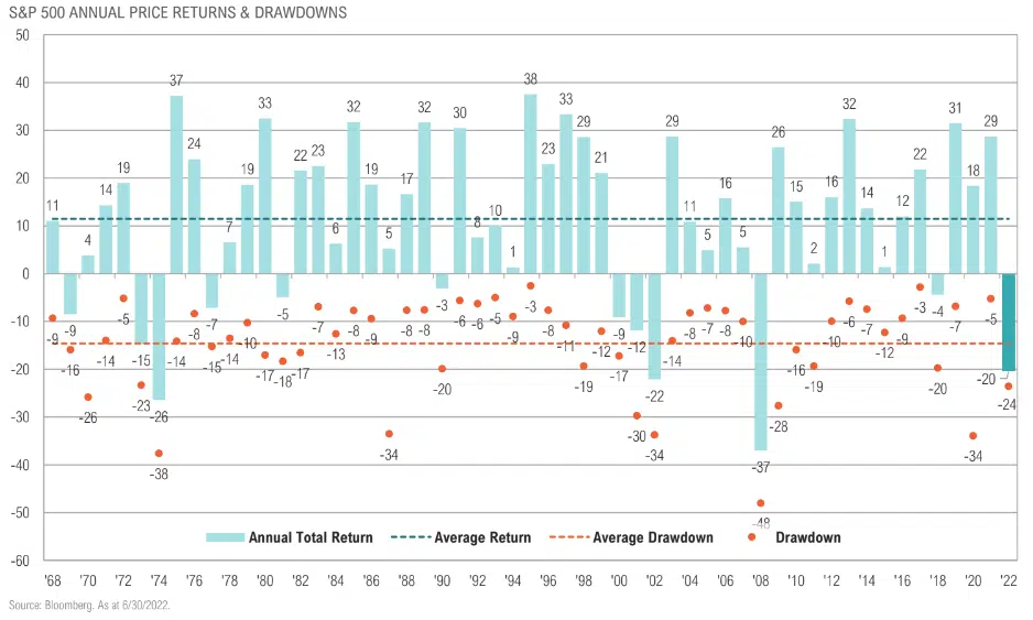 The S&P 500 is currently 20% from its all-time high, marginally worse than the average drawdown of 15% over the last 50 years