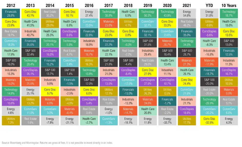 Energy has been the clear outperformer year-to-date, but has been the worst performer over the past 10-years