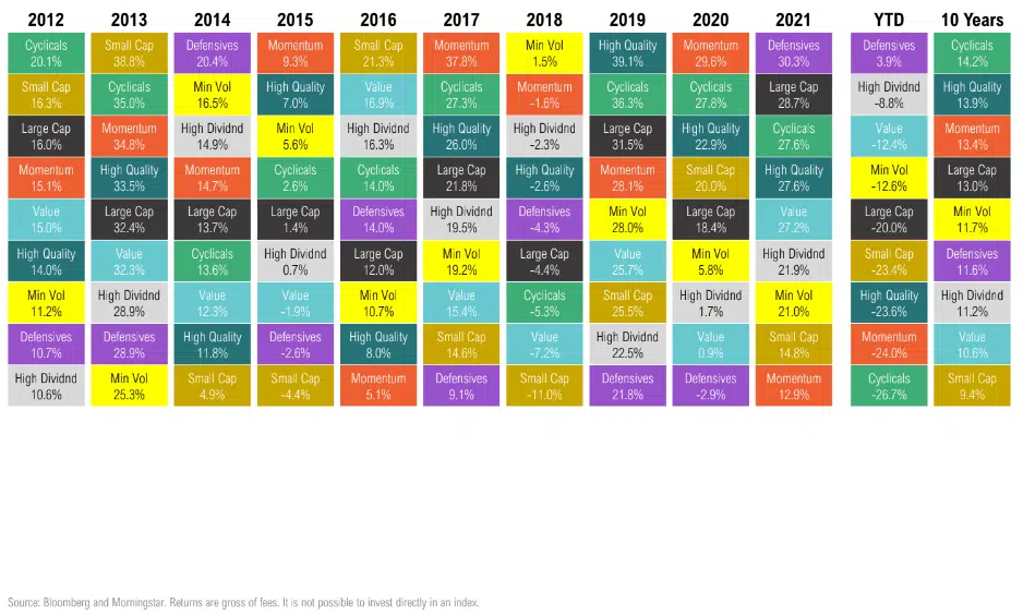 Defensives have unsurprisingly been the top performing factor for the year-to-date, while small caps have been battered