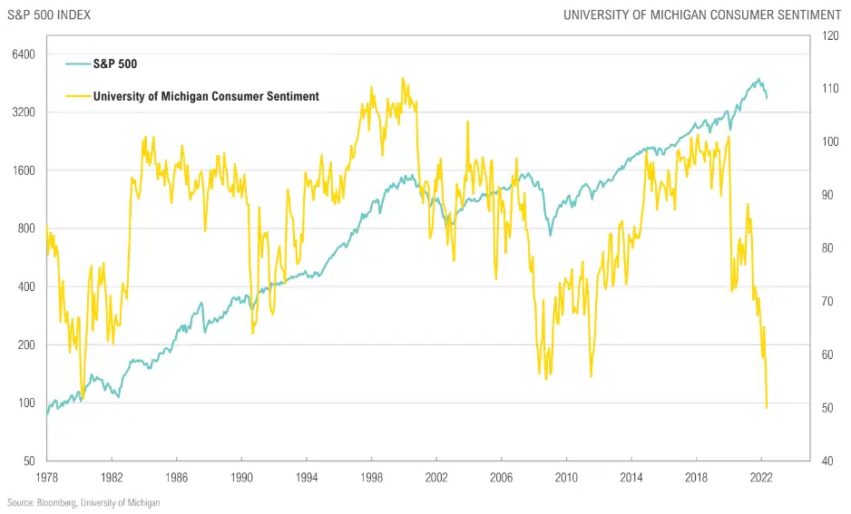 UofM Consumer Sentiment cratered to 50 in June, the lowest reading since the inception of the survey, as inflation eats into households purchasing power